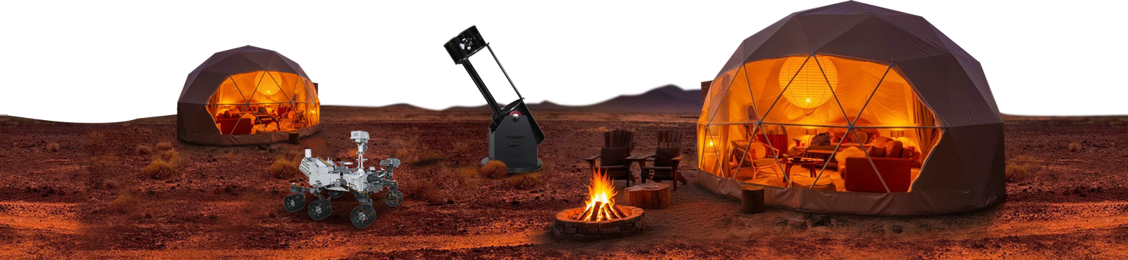 Camp on Mars without leaving Earth — stylish tents, starry skies, and cosmic vibes redefine your night under the stars.