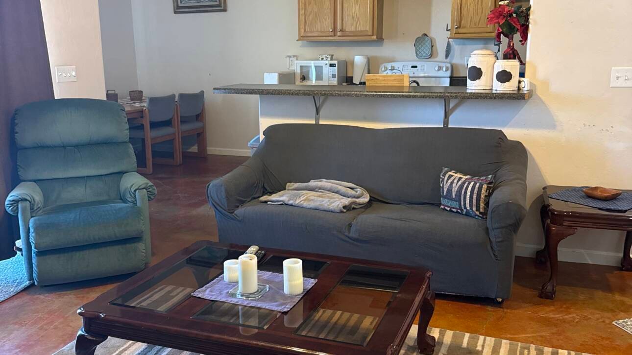 34′ RV with full kitchen and entertainment area. Two private bedrooms and pull-out couch which comfortably sleeps up to six(6) adults.